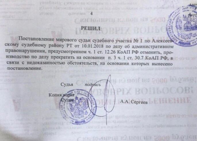 Выигранные решения по ст. 12.26 КоАП РФ