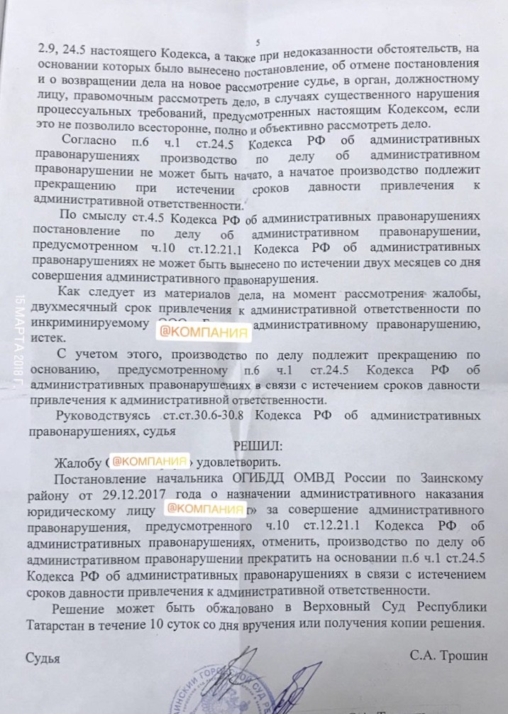 Выигранные решения по ст. 12.21 КоАП РФ